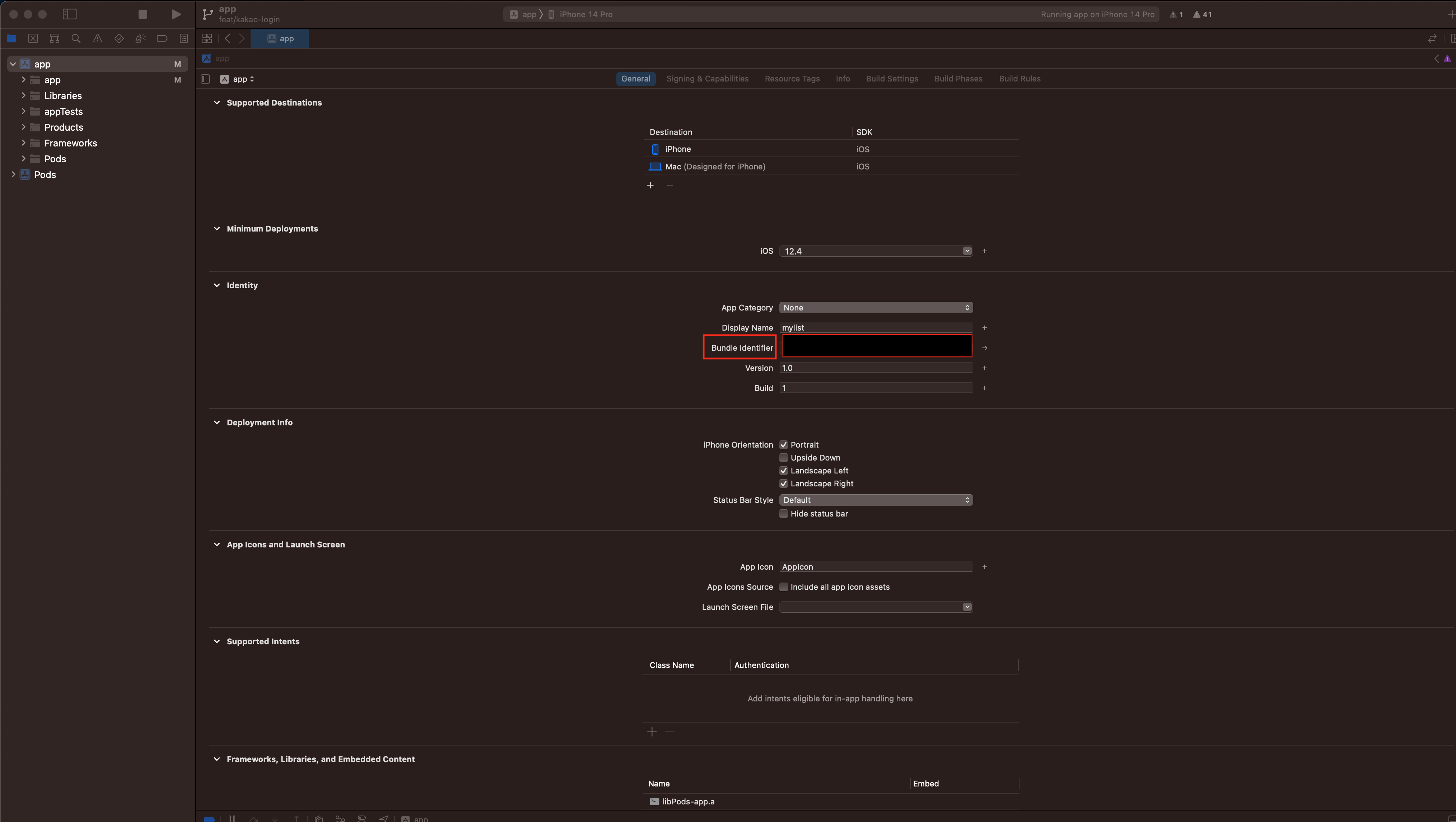 - 번들 ID 는 xcode의 general탭에서 identity를 보면 확인할 수 있고 수정도 가능하다.